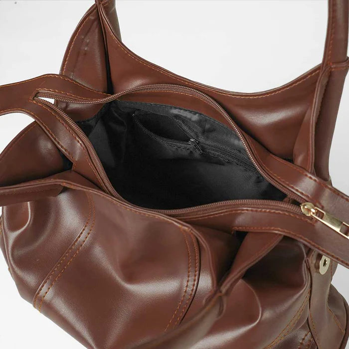 Elegance meets versatility in our beautiful Scrunchie Bag that effortlessly transition from work to friends and family gatherings. It has single compartment with double inner pockets and an outside zip pocket making this sophisticated ensemble spacious. Crafted from good quality material, our affordable bag is built to withstand the test of time, ensuring you'll always look fashionable.