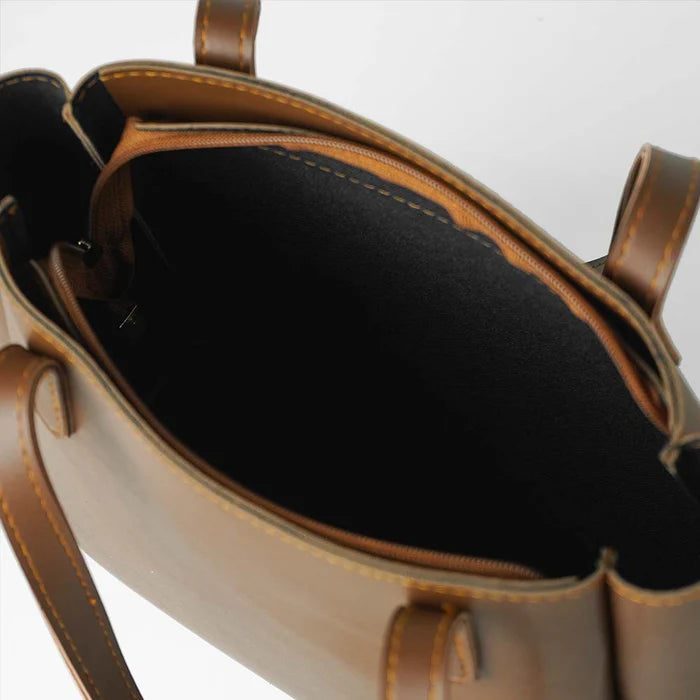 Leather Wide set of 2 Bag Brown
